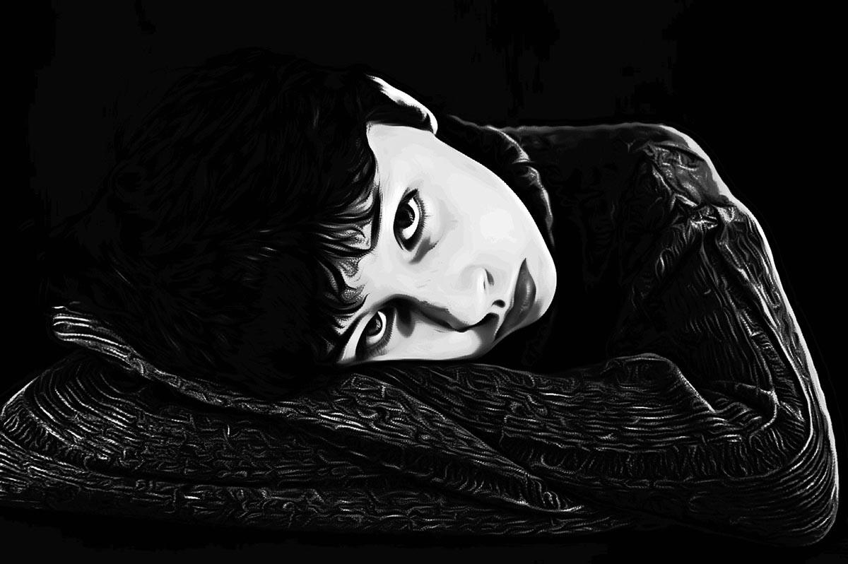 Осторожно присаживаюсь, она прижимается ко мне спиной. Ей пятнадцать, очень худая брюнетка с остро выпирающими позвонками. Узкое правильное лицо с прямым тонким носом, а её глаз я никогда не видел.