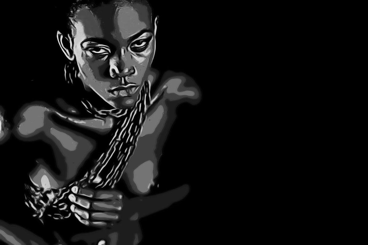 На негритоса жутковато смотреть. Ошалелый, с безумными глазами, сероватый вместо чёрного, еле стоит на ногах.