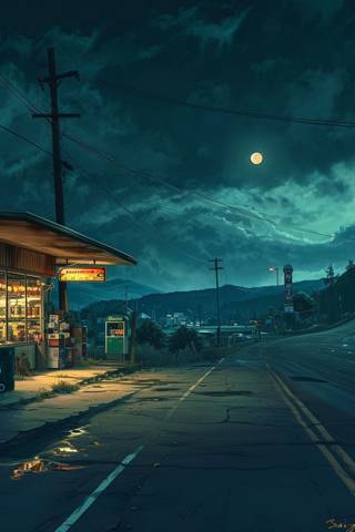 Машина сбросила скорость, и мы плавно подкатились к придорожной заправке, совмещённой с кафе, минимаркетом и мотелем. На парковке пусто, но окна светятся. Мы запарковались у самых дверей и вышли.