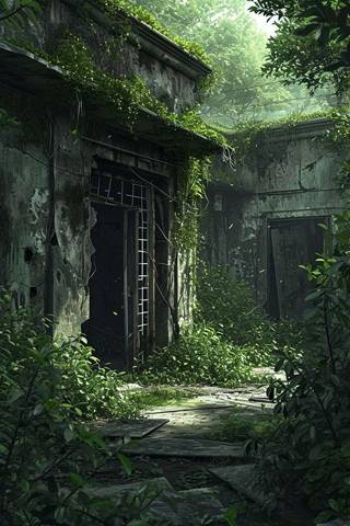 Дорог как таковых тут нет, но места, где они были, отличаются отсутствием деревьев. Их кроны сходятся сверху, образуя зелёные сумрачные тоннели с высокой травой. Её соком, смешанным с пыльцой, я покрылся уже через пару километров, превратившись в нечто вонючее, липкое и очень зелёное. Впрочем, багги с дорогой справляется на отлично, и часа через три я достигаю конечной точки. Каменная стена, прикрытая пятнами мха и плетями камнеломки, образует нечто вроде полуобрушенного сарая. Надеюсь, его неполная целостность не помешает воспользоваться здешним проходом.