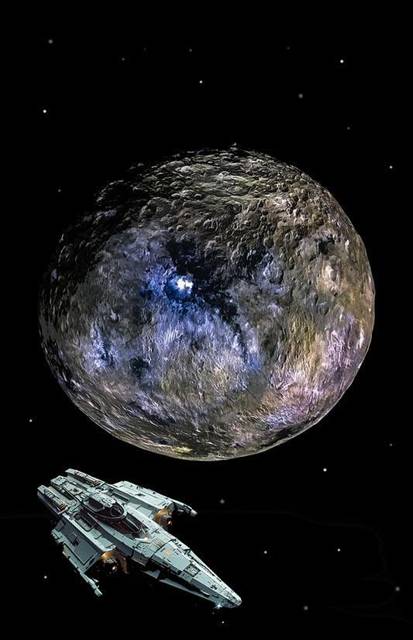 Цереру люди разглядели в примитивные телескопы ещё в девятнадцатом веке, и сначала назначили в планеты, а потом, при ближнем рассмотрении, разжаловали в астероиды, но при ещё более ближнем – вернули обратно в планеты, с приставкой «карликовая». Таких в Солнечной потом насчитали целое семейство – Плутон, Эрида, Хаумеа, Макемаке… Церера из них самая маленькая и самая близкая к Земле – болтается в поясе астероидов по собственной орбите между Марсом и Юпитером. Диаметр её всего девятьсот пятьдесят километров, что в три с половиной раза меньше Луны. Но Луна летает вокруг планеты, а Церера – вокруг Солнца, это совсем другой статус.
