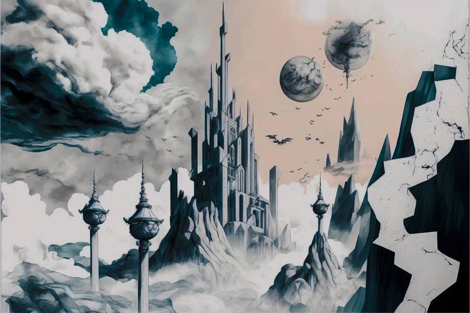 Он изящно опирается на ограждение балкона. Внизу раскинулись десятки ярусов и сотни этажей вертикального города. Над головой плывут удивительно близкие облака. Всеношна очень красива, если смотреть на неё сверху вниз, а не наоборот.