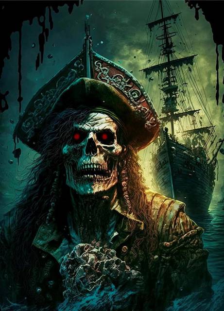 Завирушка с замиранием сердца смотрит на знаменитого капитана-андеда. На его полусгнивший мундир с давно забытыми орденами за древние морские баталии, на потускневшее золото эполет, на тлеющие в глазницах угольки глаз. Кости правой руки лежат на рукояти ржавой абордажной сабли. Левая, лишённая плоти кисть заложена за отворот кителя. На голой зубастой челюсти каким-то чудом держатся клочья седой бороды, скрипит деревянная нога.