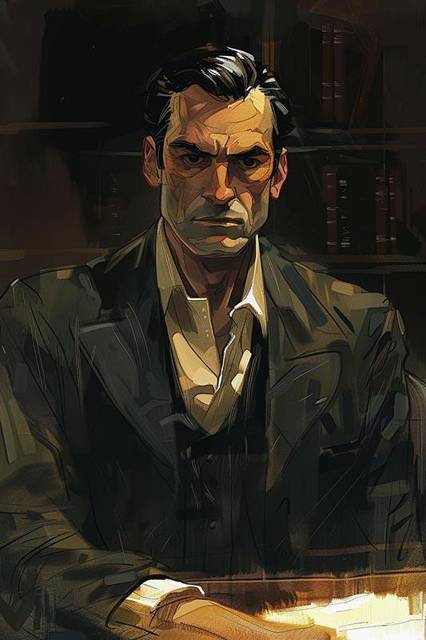 Мужчина не молод и не стар, возраст его непонятен, лицо непроницаемо. Выглядит опасным.