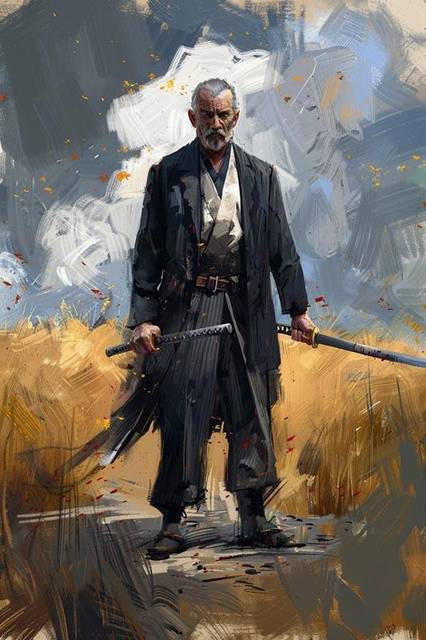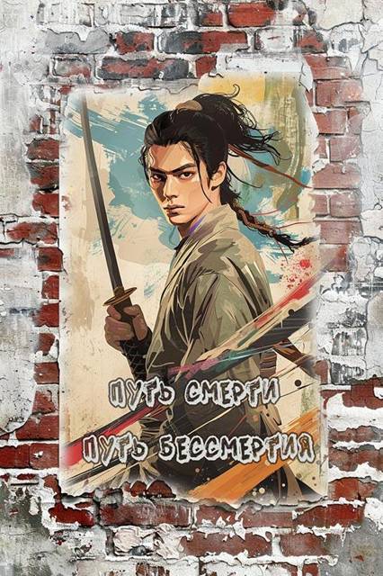 На стене висит плохо отпечатанный тусклый бумажный плакат. На нём совсем молодой мужчина, почти юноша, азиатской внешности, с завязанными в узел чёрными волосами и суровым прищуром раскосых глаз держит узкий изогнутый меч с оплетённой цветными шнурами длинной рукоятью. Ниже написано: «Путь смерти – путь бессмертия!»