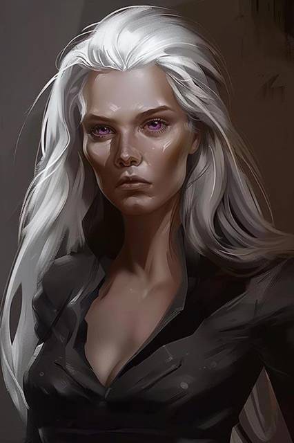Из кресла в тёмном углу встала женщина, которую я до сих пор не замечал. От её внешности я потерял дар речи – высокая, стройная, с некогда, видимо, очень светлыми, а теперь полностью седыми волосами, но главное – с огромными, грустными, необычайного фиалкового цвета глазами. Ей, наверное, около пятидесяти, и она не скрывает свой возраст. Мимические морщинки выдают невесёлый характер или сложную судьбу, но женщина потрясающе, невероятно красива даже в свои годы. В молодости, наверное, от неё сердце могло остановиться.