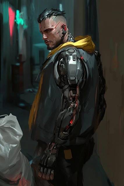 До нерфа, то есть будучи кибом, он мог разломать руками мобиль и поднять в жиме большой флаер. Из натурального в нём только мозг, лицевая часть черепа и лицо, речевой аппарат, передняя стенка живота (для декора, мышцы пресса при таких миоблоках ему не нужны), нижняя часть спины (в тех же целях) и репродуктивный мужской аппарат. Последний оставляется всегда, иначе как он после ренда будет спускать токи в борделях?
