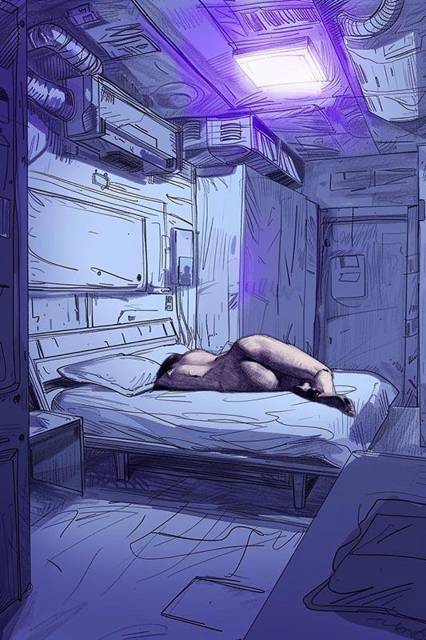 Вывел на экран картинку с камеры в седьмом отсеке. Считается, что доступ к циклической записи фискального регистратора персоналу закрыт, потому что конфиденциальность и всё такое… Ага, конечно. Седьмая мапа лежит на кровати свернувшись, что не является нормальной позой для стендбай-режима, но она и не в нём. В рабочей зоне полутьма, только дежурный неон, камера дешёвая, картинка сероватая и мутноватая, но я сразу вижу: что-то не так. Пятна и разводы на стенах, кровать… Не верю своим глазам! Кровать сдвинута! Но как? Это же стальная рама, закреплённая в пол болтами в палец толщиной! Как бы ни было лень, придётся оторвать жопу от стула и идти смотреть самому.