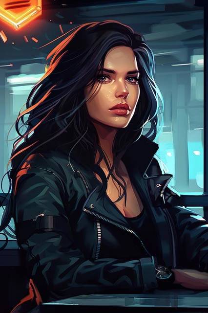 За столик непринуждённо валится фигуристая черноволосая дама в коже. Немного чумазая, немного пыльная, волосы растрёпаны ветром пустошей. Типичная клановая, только что с мотоцикла спрыгнула, вон он, стоит неподалёку. Судя по тому, на каком месте припаркован, дама в местном комьюнити авторитетная. Для клановых это нетипично, пожалуй. Не знаю, как там в пустошах, а на Средку от них в основном мужики приезжают.