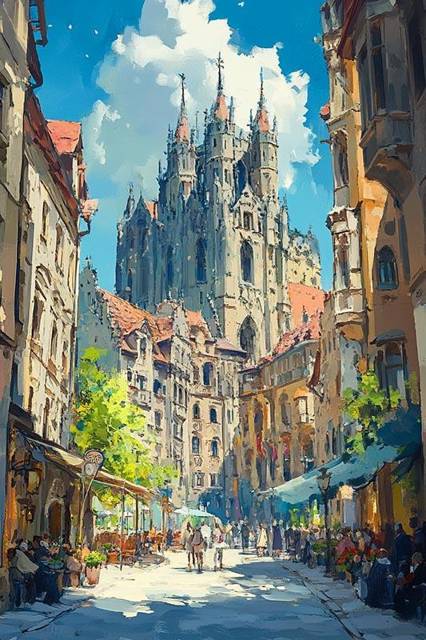 Над малоэтажным городом довлеет громадина серого замка, который мне, ничего не понимающему в архитектуре, хочется назвать «готическим». В городе узкие, мощёные камнем улицы, застройка в четыре-пять этажей, это сооружение выше раза в два. Башенки, шпили, стилизованные бойницы, стрельчатые окна, прочие излишки декоративного зодчества, названия которых мне неизвестны. В таком должен жить король, не меньше. В общем, когда Лейхерот указал пальцем на замок и сказал: «Нам туда», я ничуть не удивился. Куда же ещё.