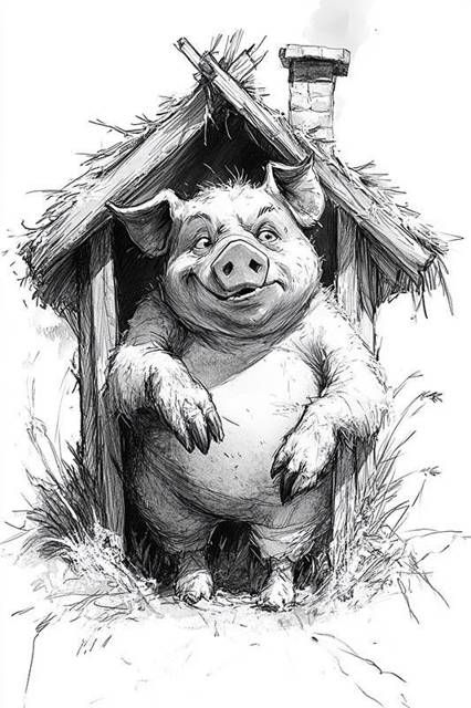 – Может, ещё и не доберётся до нас Волк! – храбрится Нуф-Нуф. – Палками оцарапается, говном побрезгует! У меня всё-таки дом, не то, что твой соломенный шалашик.