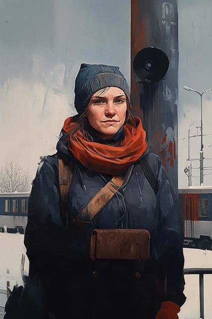 Меж тем, дверь Убежища открылась, и оттуда повалили люди. Одетые очень разнообразно, но тепло и чисто, они сперва с удивлением смотрели на аэросани, но потом отходили в сторону и строились рядами на расчищенном пятачке перед входом. Всего их оказалось около трёх десятков. Последней, выдержав паузу, вышла женщина лет за сорок в синей тёплой куртке, вязаной шапке и ярко-красном шарфе. Она встала на возвышении возле столба с динамиком и, протянув руку, выключила его.