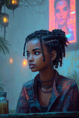 Козя во все глаза смотрит, как по озарённому неоном и рекламой променаду гуляют красиво одетые весёлые люди, мерцает подсветка на одежде, блестят декоративные накладки на имплах, танцуют в витринах борделей изящные мапы, катятся сияющие огнями мобили и моты.