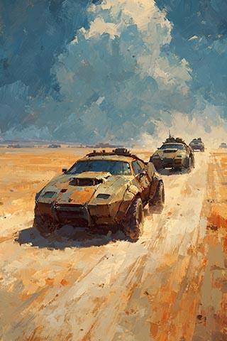 Попались на третий день, когда Город уже отчётливо виден, и кажется, что до него рукой подать. Вряд ли они искали конкретно нас, но завидев пыль, поднимаемую нашей машинкой, навелись и рванули вдогонку. Не все, к счастью – от едущей куда-то группы машин отделились два мота и взяли курс наперерез. Я включил «турборежим», подав на мотор-колесо полный ток с батареи, но аппарат далеко не гоночный, и моты быстрее. Очевидно, что наши траектории через какое-то время пересекутся, но останавливаться не собираюсь, может, клановым раньше надоест. Автономность у них теперь ограниченная, этой парочке ещё основную группу догонять, та явно куда-то по делам чешет, на нас просто по дороге отвлеклись.