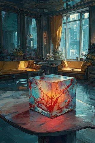 Два полупрозрачных кубика. Каждый размером с мою голову примерно. Грязновато-голубые с прожилками.