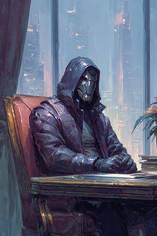 Владетель Грерат сидит за столом в балахоне и маске. Видеть его лицо мы, надо полагать, недостойны. Или это те самые «странные заморочки», которые надо просто принимать как есть.
