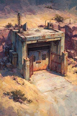 Целью нашего путешествия оказался бетонный сарай посреди ничего. Окон нет, есть стальные ворота, под которые намело песку.
