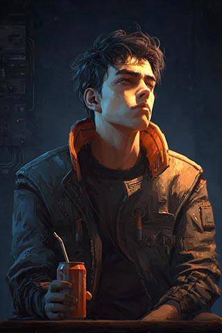 Мы сидим в кафе, его выбрал для встречи сам Ередим, и я не очень понимаю, за что. Довольно слабенькая забегаловка, на той Средке, которая была два года назад, такая считалась дешёвкой для шлоков, прогуливающих последние токи. Ассортимент чуть получше пищемата, автоповар с нижним уровнем лицензированной прошивки, потасканная киб-официантка третьего ренда с дешёвым глючным сетом приволакивает ногу и с третьего раза принимает заказ. Возможно, на нынешней Средке это уже нормальный средний уровень, я пока плохо ориентируюсь в новых реалиях. Вон, компания молодых людей в «скорлупе» торопливо перекусывает, чувствуя себя вполне расслабленно и комфортно. Едят, смеются, болтают, выглядят беззаботно. По прежним меркам совсем молодь, лет по пятнадцать-шестнадцать, но микроренд позволяет им не сидеть на соцмине, который, говорят, теперь тоже понерфан по лимитам. Город мотивирует молодых к труду.