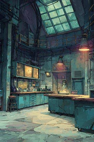 Лаборатория дальше по коридору, дверь не закрыта. Тут куча оборудования, которое мне совершенно не знакомо, даже предположить, что эти штуки делают, не могу. На верстаке зажата в сложной конструкции имплорука с подключёнными проводами и трубками. Она уже успела покрыться пылью.