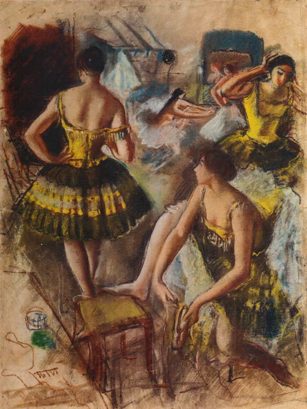С конца года и до 1924 года по специальному разрешению дирекции рисовала балерин за кулисами Петроградских академических театров.