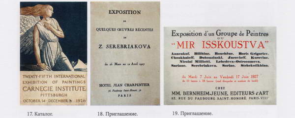 Перечень выставок и экспонировавшихся на них произведений З. Е. Серебряковой приведен с сохранением оригинальной орфографии.
