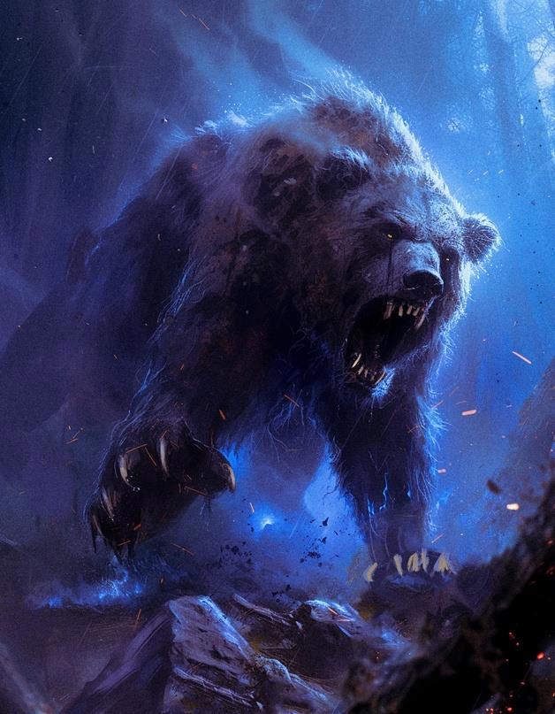 Этот раз отличался от прошлого. Образ медведя был близок к реальному. Не такой иллюзорный, как раньше. В его движениях отчётливо прослеживалась вся дикость лесного короля. Каждый взмах лапой оставлял на земле глубокие ямы и если простой человек попадёт под горячую руку зверя, то его тело расколется на множество мелких кусочков.