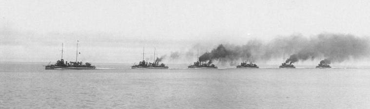 «Лейтенант Бураков» в море (вверху) и 4-й дивизион в походе. 12 июня 1913 г.
