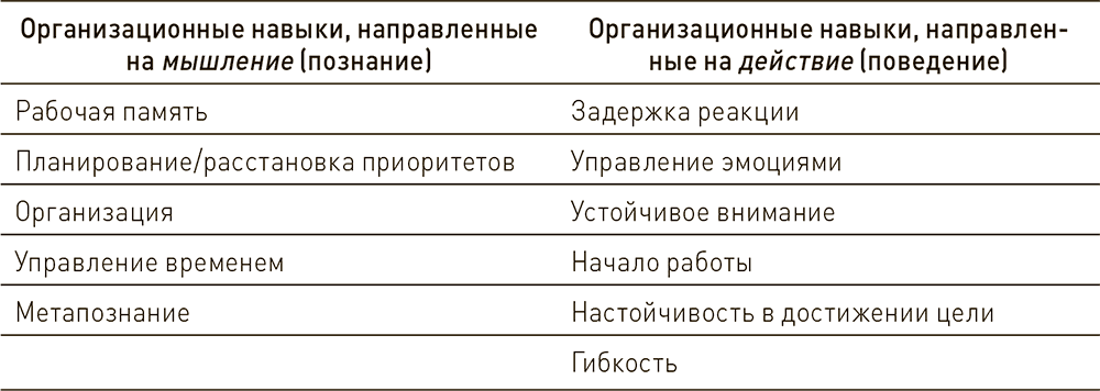 Существуют разные классификации организационных навыков, но наша модель была создана для достижения конкретной цели: разработать способы, благодаря которым родители и учителя помогут развить организационные навыки у своих детей.