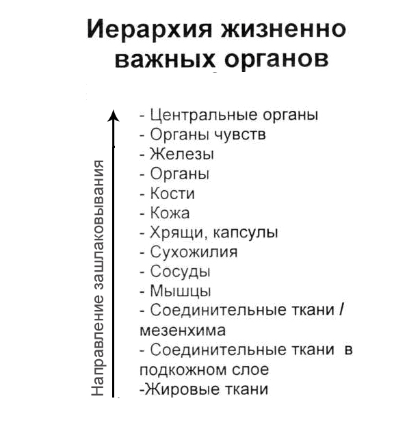 Молочную кислоту нейтрализуют минеральные вещества. Если «свободных» минеральных веществ в организме недостаточно, то они неизбежно изымаются из тканей тела, согласно приоритету важности данной ткани или органа в иерархии.