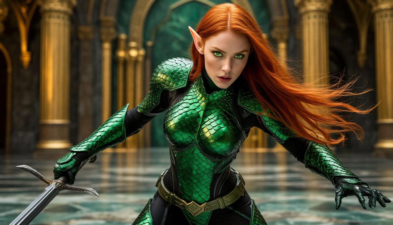 Долго не пришлось ждать. Спустя, примерно минуту, послышались приближающиеся шаги. Окинув товарищей взглядом, морально приготовился ко встрече с Риксом Эола. Когда из-за статуи вышла рыжеволосая девушка лет двадцати пяти-тридцати в облегающей чешуйчатой зелёной броне, которая подчёркивала все женские линии Рикса. Я чуть не ослеп от её красоты. Она, словно бриллиант излучающий само совершенство.