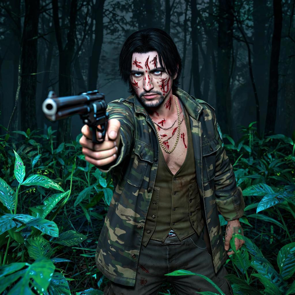 На монстра, словно невидимый поводок, набросили узду. Он побежал назад, в темноту, не оглядываясь. Вот что он изучал! Через секунду из леса выехал… мотоцикл. Нет, не мотоцикл. Что-то вроде квадроцикла на массивных колёсах, без фар, только тусклые габариты. За рулём сидел человек в таком же камуфляже, но его куртка была расстёгнута, а на шее болталась массивная золотая цепочка. Он был без шлема, и его лицо было испещрено множественными шрамами. Он с раздражением посмотрел на нас, потом на скрывающихся в чаще монстров.