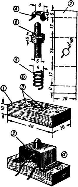 Рис. 33. Конструкция самодельной кнопки: а – внешний вид; б – конструкция деталей кнопки.