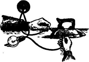 Все перечисленные викторины имеют аналогичное устройство, поэтому достаточно рассмотреть конструкцию одной викторины и по ее образцу изготовить любую другую. Электрифицированную карту СССР можно изготовить, например, на тонком листе фанеры. Сначала на лист чертежной бумаги нанесите контуры карты. Разметьте места, где должны располагаться крупные города, реки, озера, моря, гидроэлектростанции и т. д. Для этой цели можно взять и готовую контурную карту и наклеить ее на фанеру. В точках, обозначающих города, названия рек, озер, морей, электростанций и проч., вбейте мелкие медные мебельные гвозди с широкими головками. Они будут служить контактами. Названия городов, рек, ГЭС и проч. напишите столбиками внизу, под картой, и против каждого названия вбейте по одному мебельному гвоздю. Это будут вторые контакты. С противоположной стороны карты соедините между собой изолированными проводами контакты в точках городов, рек и проч. с соответствующими контактами перед их названиями внизу, под картой. Например, контакт, установленный в точке, где расположен город Москва, надо соединить с тем контактом внизу под картой, возле которого стоит надпись «Москва». Внизу со стороны монтажа укрепите батарейку от карманного фонаря.