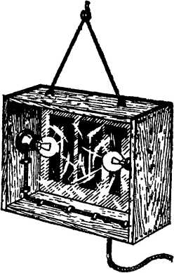 Закройте ящик стеклами с противоположных сторон. При этом на стенках изнутри наклейте предварительно слова: «Тише, идут занятия». Буквы для этих слов вырежьте из черной бумаги или напишите аккуратно черной эмалью или лаком. Наклейте на всю поверхность стекла поверх букв кальку, вверните в патроны электрические лампочки мощностью 15–20 ватт. В верхней и нижней стенках ящика просверлите отверстия для вентиляции – и табло готово. Внешний вид табло со снятым стеклом показан на рисунке 40.