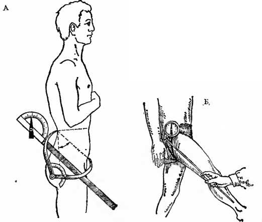 Рис. 11. Измерения объема движений в тазобедренном суставе (А, Б)