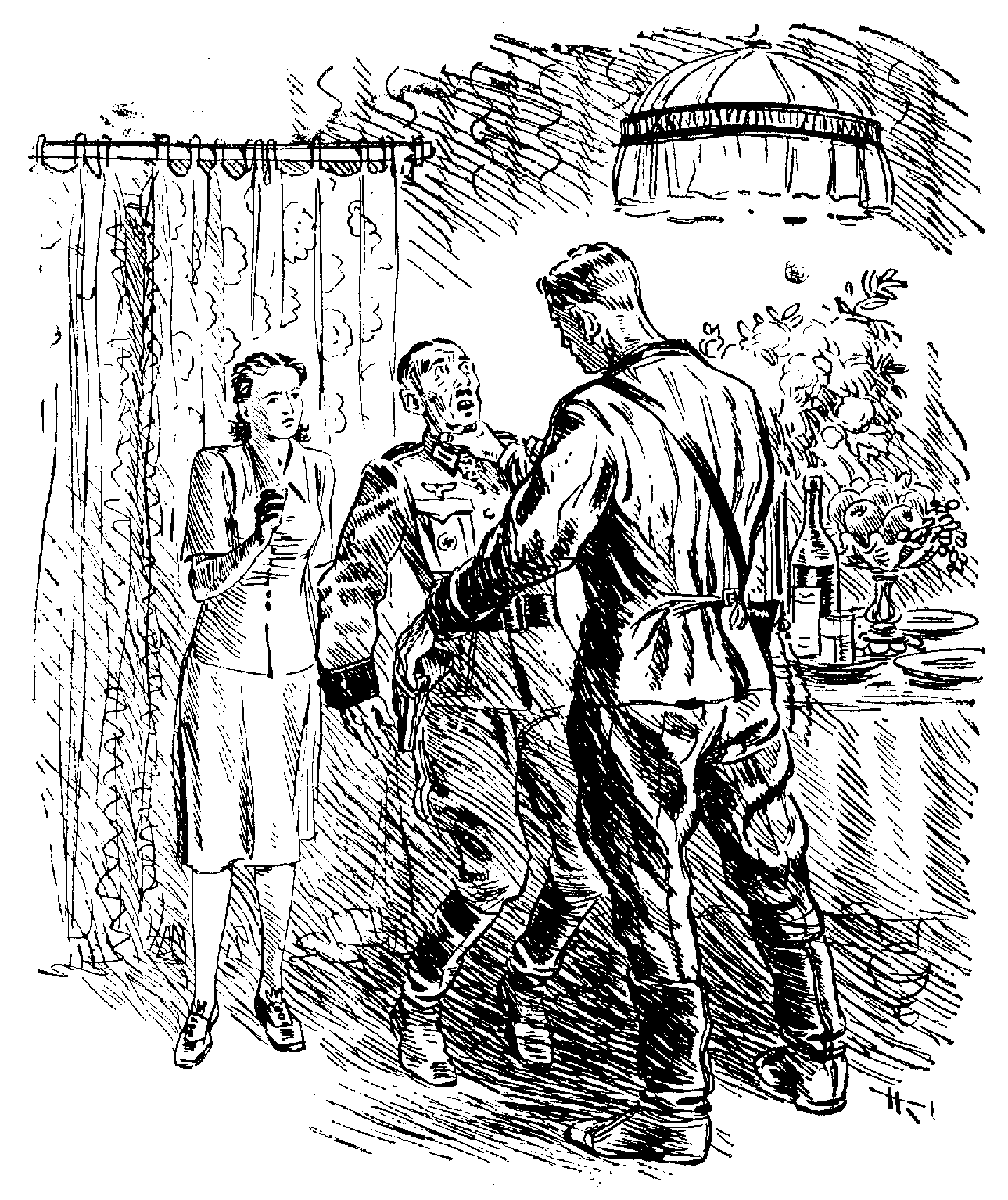 После второй рюмки зондерфюрер почувствовал легкое опьянение. Смуглое лицо медички расплывалось в тумане. Они сидели рядом. Он обнял ее и потянулся губами. Но девушка гибким движением выскользнула из-под его рук.