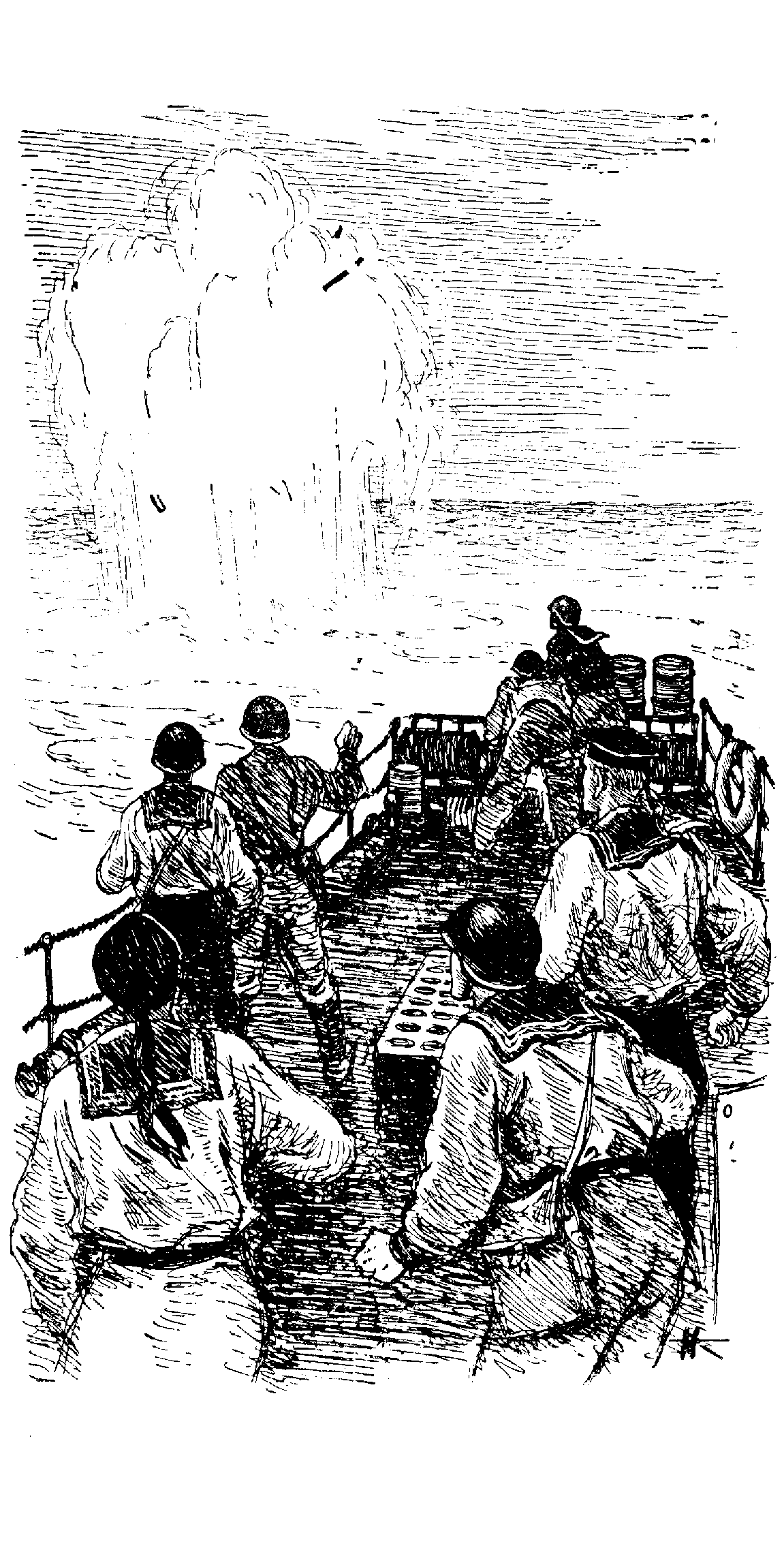 У нас на борту было мало глубинных бомб. Мы не могли попусту транжирить их, хотелось действовать только наверняка. Мы осторожно повели катер малым ходом по следу подводной лодки, надеясь, что она опять заляжет на облюбованной ею гряде, а там не сложно будет добить ее и небольшим запасом бомб.