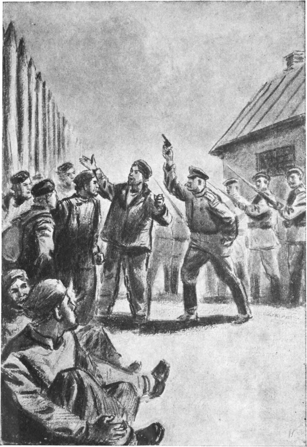 Скоро подошла и партия. Многие арестанты, обессиленные, повалились на землю. Конвойный офицер что-то кричал на солдат, наскакивал с револьвером на арестантов. Те тоже кричали. Один арестант поднял руку и стал громко говорить, обращаясь к остальным. Офицер отдал короткую команду; солдаты вскинули ружья – и раздался залп. Говоривший арестант и еще несколько человек упали. Партия заволновалась, но осталась на месте. Раздалась вторая команда – второй залп. Арестанты не выдержали и, толкая друг друга, бросились в ворота этапки. На земле осталось несколько раненых и трое убитых.