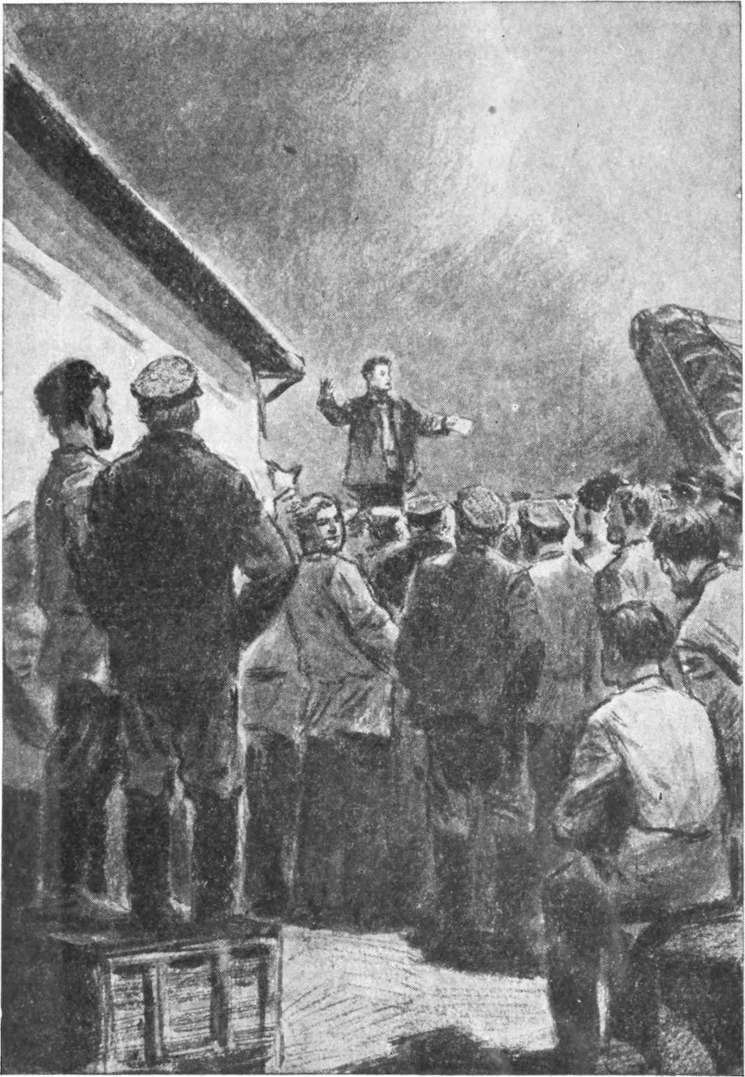 Я созвал молодежь и поручил ей провести агитационную работу главным образом среди наиболее авторитетных стариков. Молодежь энергично принялась за дело. Ночью созвали общее собрание. Прения были горячие. Некоторые рабочие настаивали на принятии предложения начальника порта: