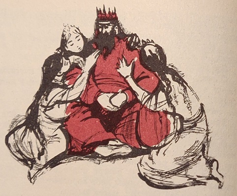 Мать-царица поначалу было противилась, а потом видит, ничего не поделаешь – стоит царевич на своем, да и все тут. Подумала-подумала царица: девушка ведь послушная, и умница-разумница, и сердечная, и работящая. И дала свое согласие. Оставалось только царя уговорить, чтобы и он выбор сына благословил. Ну, здесь-то все как по маслу пошло! Оба, – и царица-мать и царевич, – упали перед ним на колени, и так ту девушку расхвалили, что царь согласился. Обручили они сына с царицыной любимицей и назначили день, когда свадьбе быть.