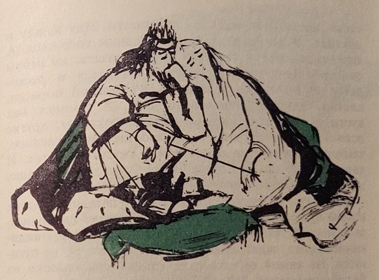 Сидит гость, кругом оглядывается, видит, все другие гости с охотой едят, а ему от той еды с души воротит. Он бы и рад со всеми веселиться, питьем и яствами насладиться, только какой кусок в рот ни положит, он ему в горло не идет, – так слуга полные тарелки и уносит.
