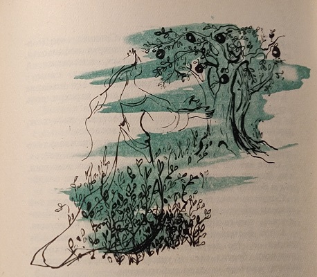 И, видать, заблудилась я, на них заглядевшись да на плоды чудесные, от которых ветви к земле клонились, заслушалась пения птичьего. А певчих птах там видимо-невидимо, сидят на ветвях, меня не боятся, не пугаются. На самой середке сада вода высоко-высоко из белой мраморной чаши бьет-играет, и от нее во все стороны ручейки прозрачные, студеные растекаются.