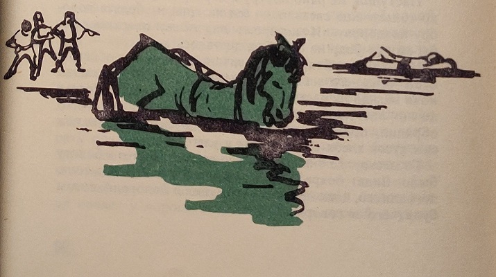 – Вставайте, бояре! Поглядите, какое чудо! Ваши-то скакуны увидели, что моя клячонка в болоте увязла, засучили портки, да и полезли ее из трясины вызволять. Гляди-гляди, как смеются!
