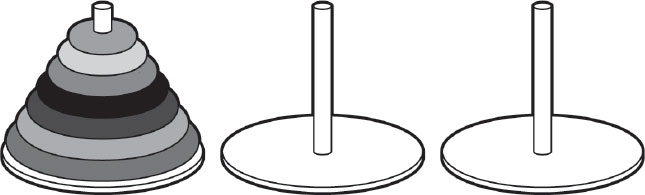 Представьте, что вы робот и вам нужно переместить пирамидку из дисков разного размера с одного стержня на другой, сохраняя их в порядке уменьшения размера. Эта головоломка, называется «Ханойские башни». Вы можете перемещать лишь по одному диску за раз и брать диск только сверху. Нельзя положить диск большего размера поверх меньшего. И есть всего три стержня. Каким образом нужно перекладывать диски? В рамках каждого хода, учитывая текущее состояние стержней, возможны два или больше перемещений. Какой же диск выбрать? На какой стержень его перенести? После того как вы перенесете диск, у вас появится больше доступных ходов, и после очередного принятого решения их количество будет расти. Игра подобна дереву возможностей, каждая ветвь которого ведет вас к решению, если вы сделали верный ход. Но как с таким множеством вариантов выбрать правильный?