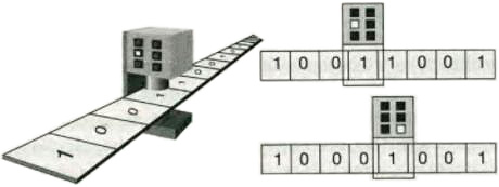 Предположим, что ячейки бумажной ленты могут содержать либо 0, либо 1, а головка, в зависимости от своего внутреннего состояния, может считывать ячейку, записывать в ячейку и передвигать ленту на одну ячейку вправо или влево. Конкретная машина Тьюринга будет выполнять серию операций в зависимости от того, что она обнаружит на ленте, и в соответствии со способом реагирования, на который настроена ее головка. Например, если она обнаруживает на ленте 1, когда сама находится в состоянии «1», она может заменить на ленте 1 на 0, поменять свое внутреннее состояние на «2» и сдвинуть ленту на один шаг вправо. В новой ячейке может оказаться 0. Когда головка находится в состоянии «2» и считывает 0, она, возможно, запрограммирована на сдвиг ленты на один шаг влево, а если она считывает 1, то меняет 1 на 0 и сдвигает ленту на один шаг вправо. Если реакции головки искусно запрограммированы, машину можно использовать для выполнения даже самых сложных вычислений. Реальное конструирование такой головки и ее реакций может быть весьма сложной процедурой, а вычисления могут быть очень медленными, но здесь нас интересует лишь принцип вычислений, а не их эффективность.