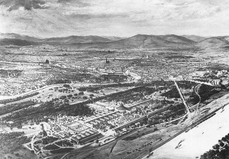 4. Вена в 1873 году, когда Фрейд поступил в университет. Вид с высоты птичьего полета. Литография.