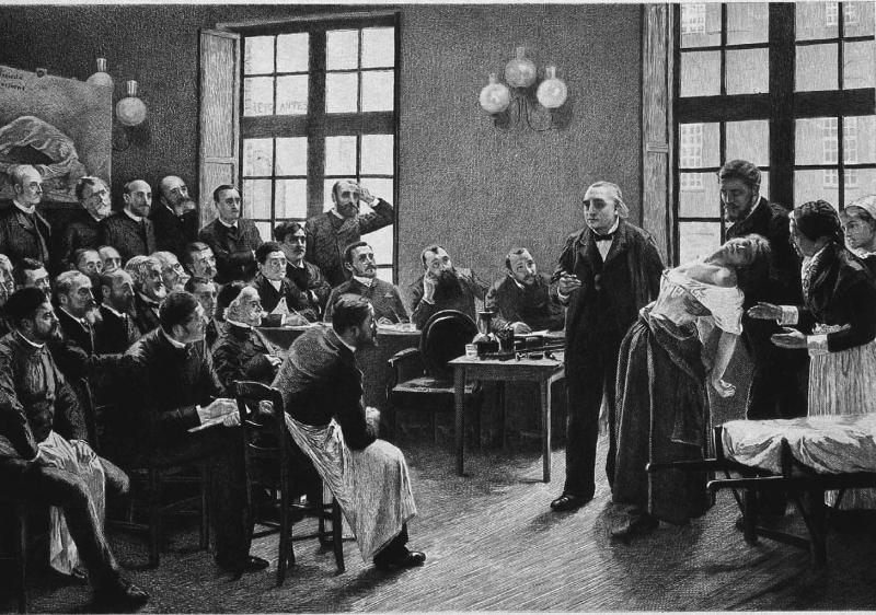 12. На гравюре по картине Андре Бруйе «Лекция доктора Шарко в больнице Сальпетриер» (1887), висевшей в кабинете Фрейда на Берггассе, 19, Шарко демонстрирует публике женщину в истерическом припадке. Wellcome Images CC / Diomedia.com