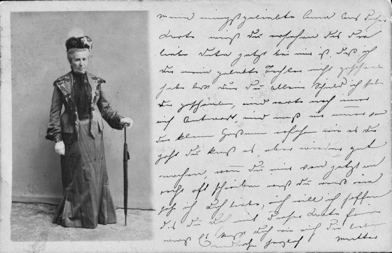 18. Открытка с фотографией матери Фрейда Амалии, отправленная дочери Анне Бернайс в США. 14 августа 1903 года.