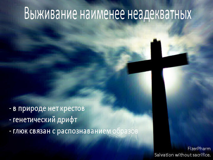 Вы можете спросить: как такой смертоносный признак мог прочно укрепиться в популяции? Разве естественный отбор не избавился бы от него? Ответ удивительно прост: поначалу этот признак не был смертельным. Отвращение к крестам не является дефектом в мире, где крестов нет, а в природе вы не найдете много прямых углов. Любой биолог-старшекурсник вам скажет, что нейтрально селективные признаки фиксируются в малых популяциях простым процессом, который называется генетический дрейф. В данном случае признак не был даже нейтральным: та же сеть, что ответственна за крестовый глюк, была задействована и в способности вампиров к распознаванию образов, а этот признак естественный отбор активно развивал вплоть до того момента, как их добыча открыла геометрию.
