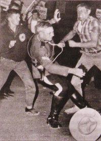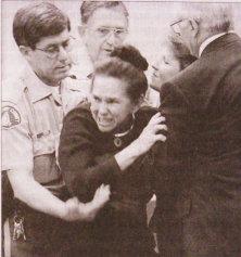 Хотя мы можем осуждать людей за то, что они говорят и делают в состоянии гнева, их поведение нам понятно. Непонятным будет для нас поведение человека, причиняющего вред другим людям, не испытывая гнева, или человека, часто выглядящего по–настоящему испуганным. Люди часто сожалеют о словах, произнесенных в приступе гнева. Принося извинения, они объясняют, что действовали под влиянием гнева, что произнесенные ими слова не следует воспринимать всерьез и что их реальные установки и убеждения оказались искаженными под воздействием этой эмоции. Такое состояние прекрасно иллюстрирует фраза «Я совсем потерял голову». Извинения даются нелегко до тех пор, пока сохраняются какие–то следы гнева, и они не всегда способны возместить причиненный ущерб. Если мы внимательны к нашему эмоциональному состоянию, т. е. если мы не просто сознаем, что мы чувствуем, но и можем взять паузу для рассмотрения того, хотим ли мы в своих поступках руководствоваться испытываемым нами гневом, то нам все равно придется выдержать борьбу, если мы решим не действовать под влиянием этой эмоции. Для одних эта борьба будет труднее, чем для других, поскольку у кого–то из нас гнев может возникать быстрее и проявляться с большей интенсивностью. Иногда мы в самом деле хотим действовать на основе нашего гнева, и, как я объясню позднее, действия, осуществленные в состоянии гнева, могут быть полезными и необходимыми. Дэвид Лин Скотт, двадцатишестилетний мужчина, объявивший себя ниндзя, изнасиловал и убил дочь Максины Кенни в 1992 г. Скотт был арестован в 1993 г., но судебный процесс растянулся на четыре года. После того как Скотт был признан виновным, Максине и ее мужу Дону была предоставлена возможность выступить во время завершающей фазы процесса. Максина обратилась к Скотту напрямую, заявив: «Ты думаешь, что ты ниндзя? Опомнись! Эта страна – не феодальная Япония, и даже если бы она была ею, то ты никогда бы не стал ниндзя, потому что ты трус! Ты бродил по ночам, одетый во все черное, носил с собой оружие и охотился на невинных, беззащитных женщин. Ты насиловал и убивал их, потому что это давало тебе ложное ощущение собственного могущества. Но ты больше похож на грязного отвратительного таракана, который бегает по стенам по ночам и заражает все вокруг. Я не испытываю к тебе никакого сочувствия. Ты изнасиловал и жестоко убил мою дочь Гейл, нанеся ей семь ударов ножом. Ты не пожалел ее, когда она отчаянно боролась за жизнь, о чем свидетельствуют многочисленные раны на ее руках. Ты не заслуживаешь того, чтобы тебя оставили в живых». Скотт, не испытывавший раскаяния, улыбался во время речи миссис Кенни. Возвращаясь на свое место, она ухитрилась ударить Скотта по голове, прежде чем ее успели схватить за руки муж и полицейские (этот момент показан на фотографии).